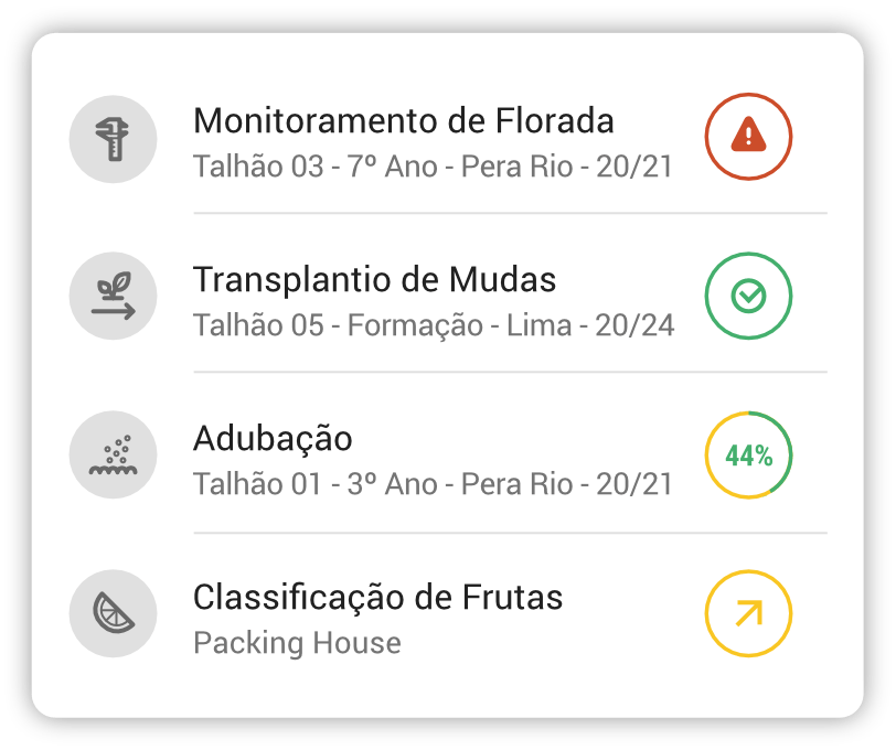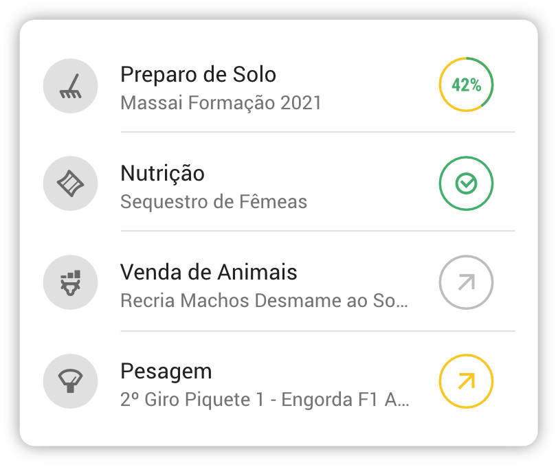 Automatize as rotinas de gestão na agricultura, pecuária e agroindústria. Com análises produtivas e financeiras em regime de competência, a partir da coleta de apenas dois tipos de dados. Tudo isso incluso também na versão gratuita!