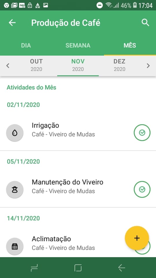 - Dados do Campo: as atividades que realiza no campo de produção ou benfeitorias